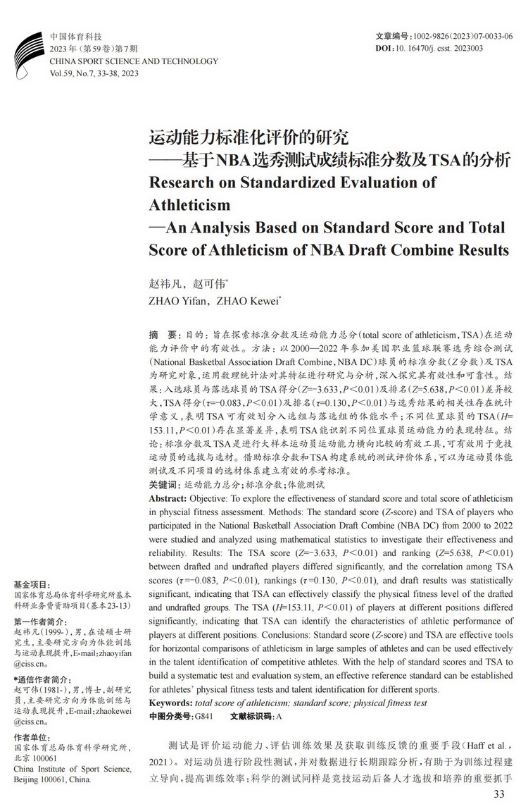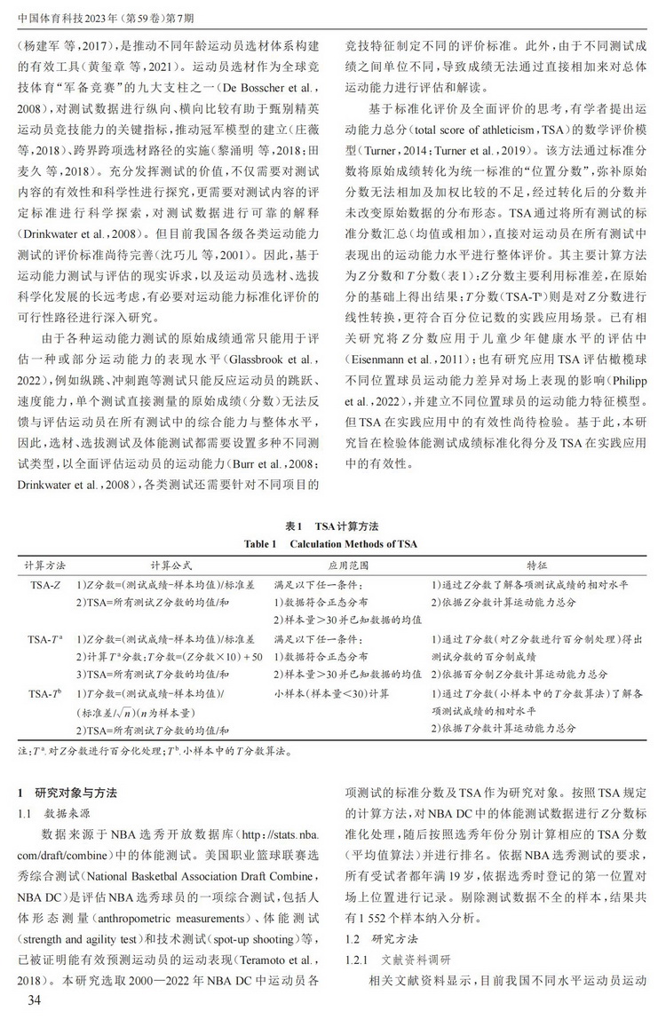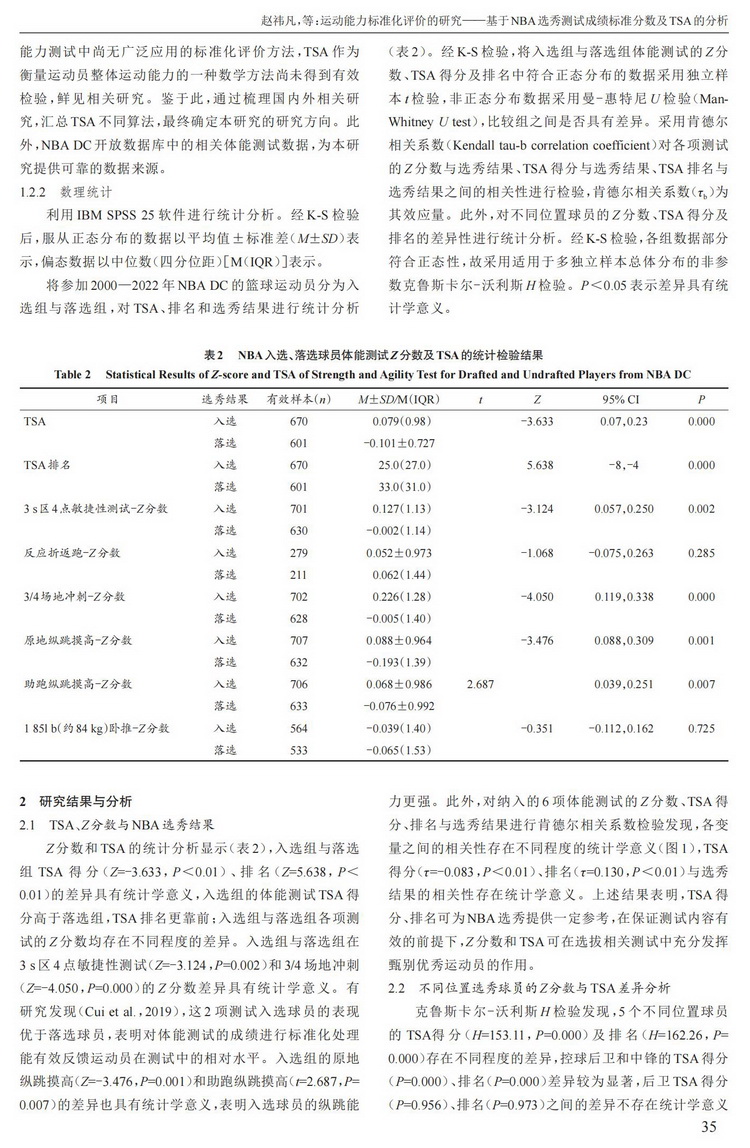 运动能力标准化评价的研究——基于NBA选秀测试成绩标准分数及TSA的分析